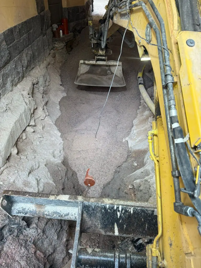 Louhintatöiden ja kaivuiden jälkeen asennettiin uudet, nykymääräysten mukaiset salaojat, sadevesiviemäröinti sekä tarkastuskaivot. Näiden avulla varmistettiin, että rakennuksen perustukset pysyvät kuivina ja rakenteet suojattuina myös pitkälle tulevaisuuteen.